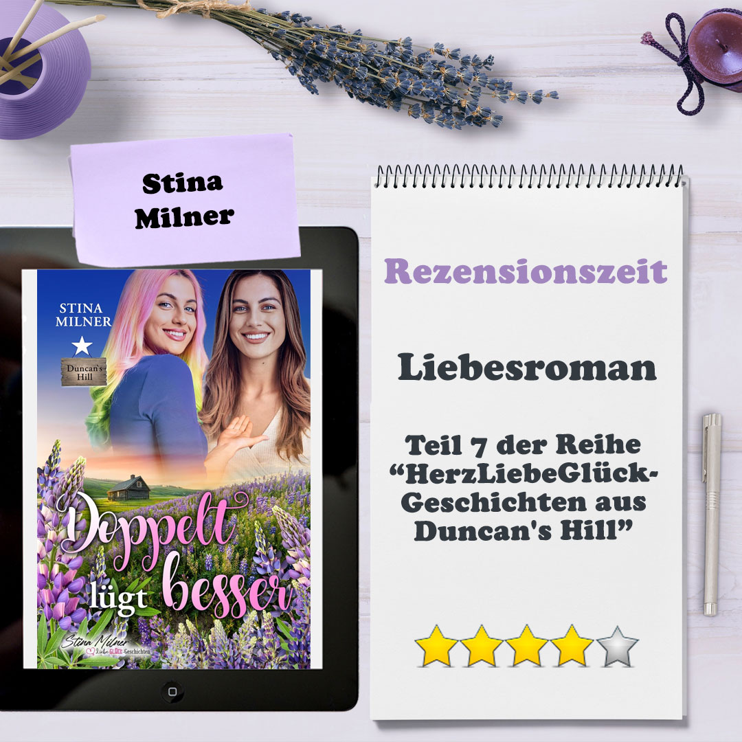 Heute feiert der siebte Band „Doppelt lügt besser“ aus der Buchreihe „HerzLiebeGlück – Geschichten aus Duncan’s Hill“ von Stina Milner Release und ich durfte ihn erneut vorab lesen. Es war so schön, wieder in diese liebevoll aufgebaute Kleinstadtwelt einzutauchen und vertrauten Charakteren zu begegnen, die für mich mittlerweile wie alte Freunde geworden sind.