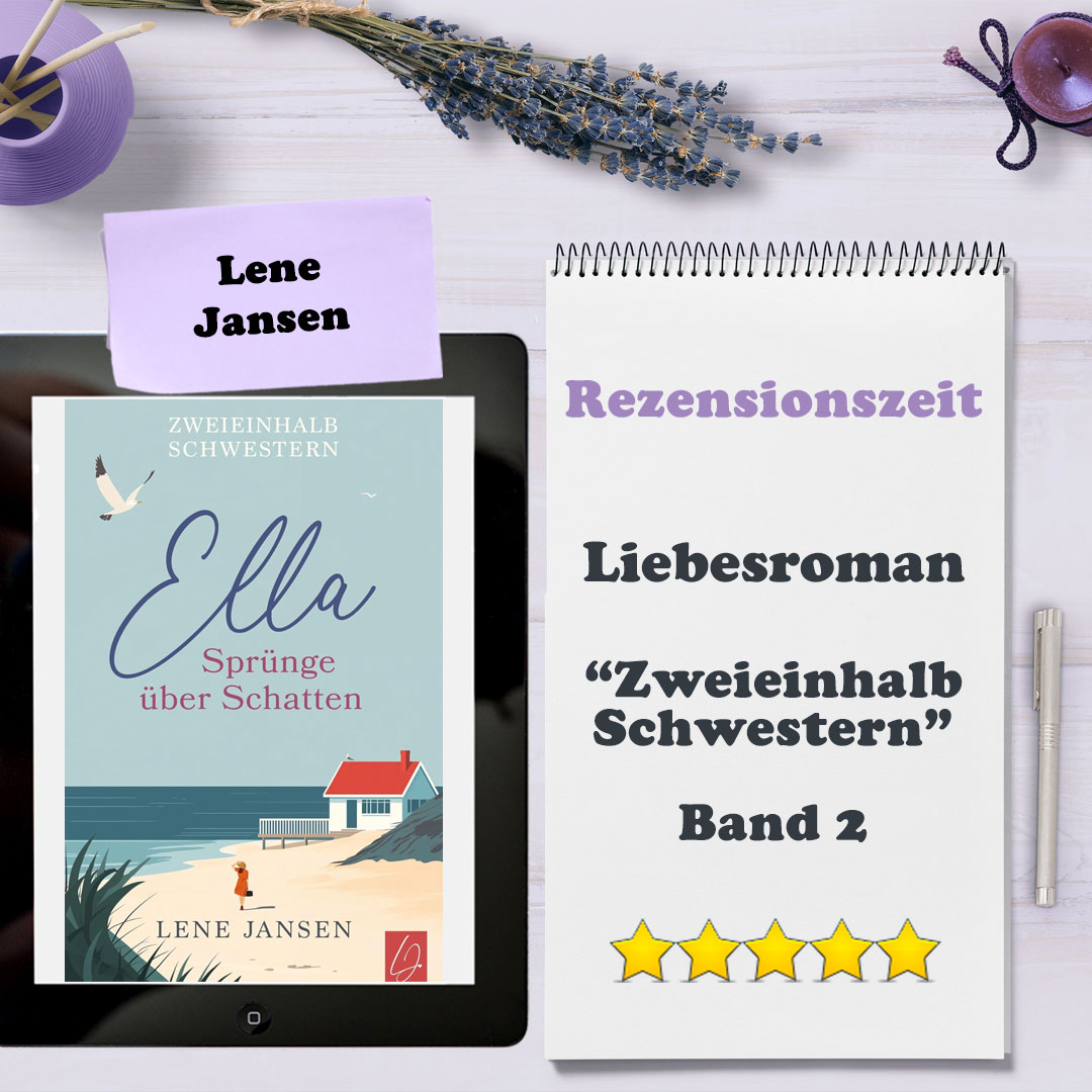 Heute möchte ich euch den zweiten Band „Ella – Sprünge über Schatten“ aus der „Zweieinhalb-Schwestern-Reihe“ von Lene Jansen vorstellen. Genauso wie Band eins habe ich dieses Buch verschlungen. Während es im ersten Teil um Jonna, die mittlere Schwester, ging, erzählt dieser Band die Geschichte weiter, diesmal aus der Sicht von Ella, der ältesten Schwester..